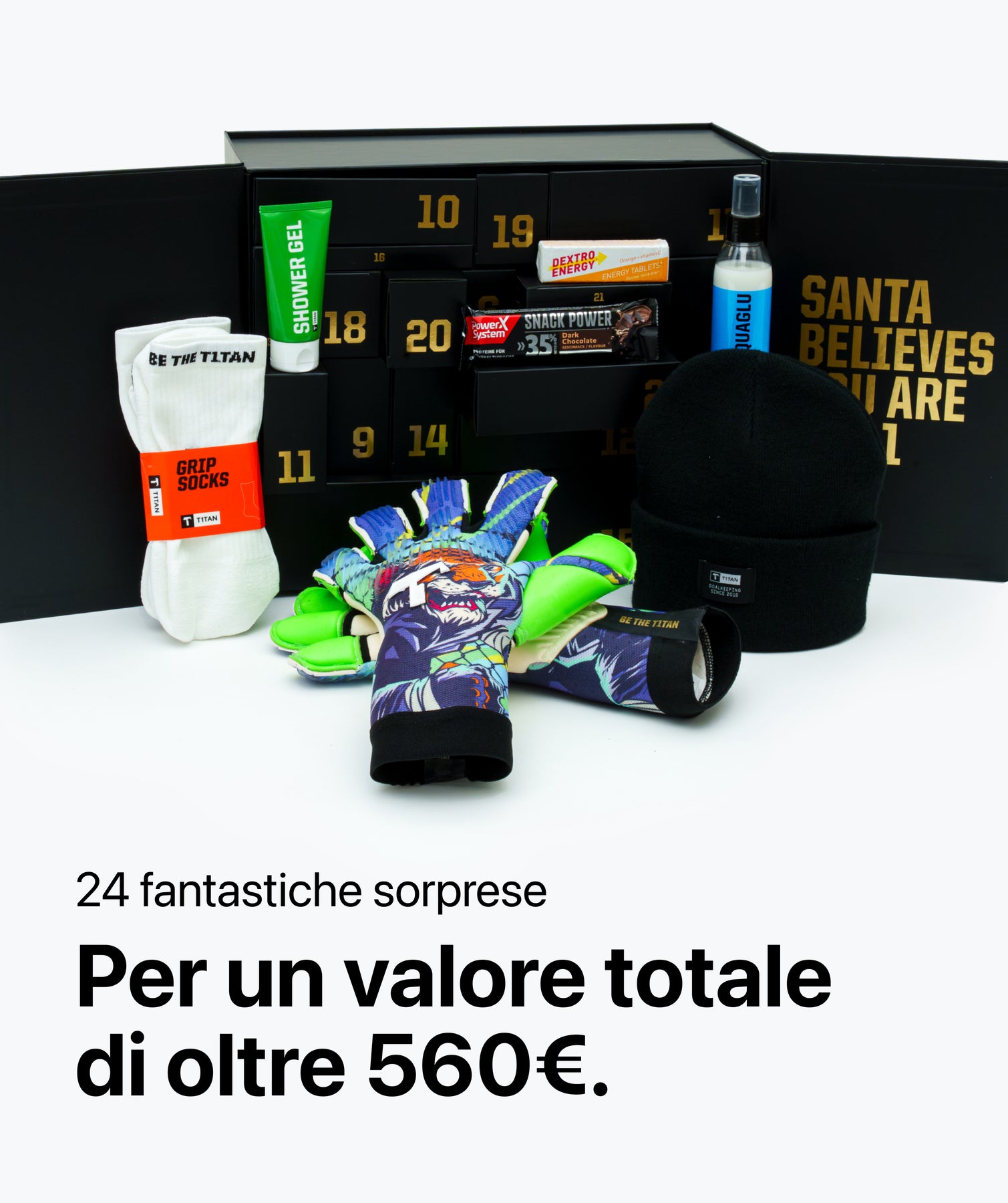 Dietro le 24 finestrelle si nasconde un'entusiasmante selezione dei nostri prodotti preferiti. Dagli accessori per l'allenamento ai prodotti esclusivi dedicati al calcio, questo calendario offre tutto ciò che fa battere il cuore di un portiere.