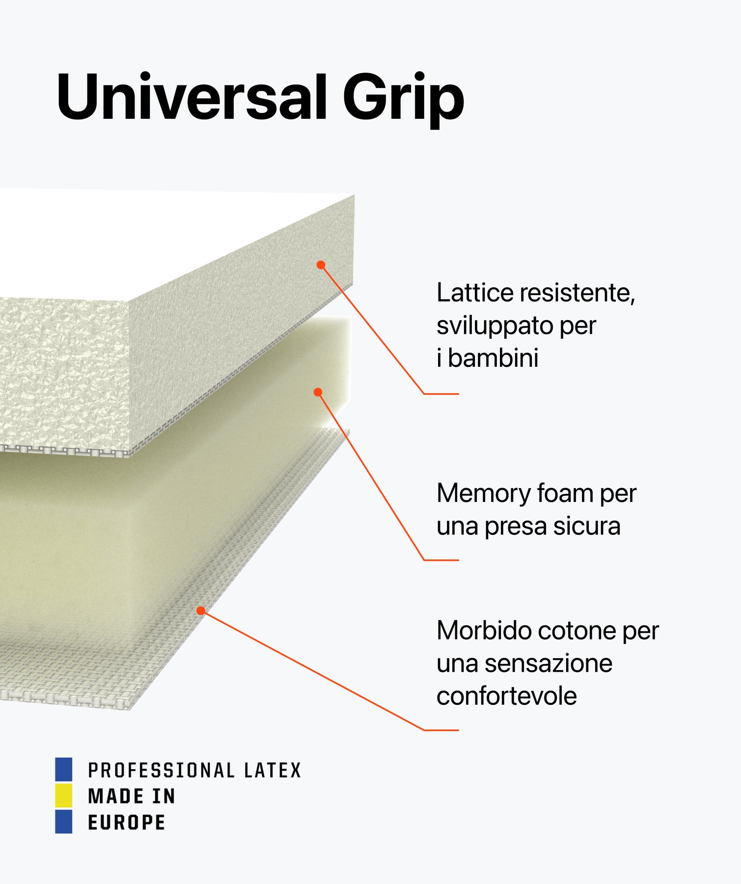Rendi il tuo bambino una potenza in porta: lo speciale Universal Grip da 3mm assicura una presa affidabile. La schiuma adesiva di alta qualità è particolarmente resistente all'abrasione e durevole. -
