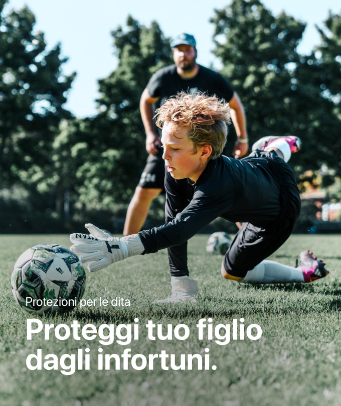 Le protezioni extra-flessibili proteggono le dita durante i colpi e riducono l'allungamento eccessivo involontario. Allo stesso tempo il pollice ha piena libertà di movimento. Ciò riduce attivamente gli infortuni, anche durante i tiri forti. -