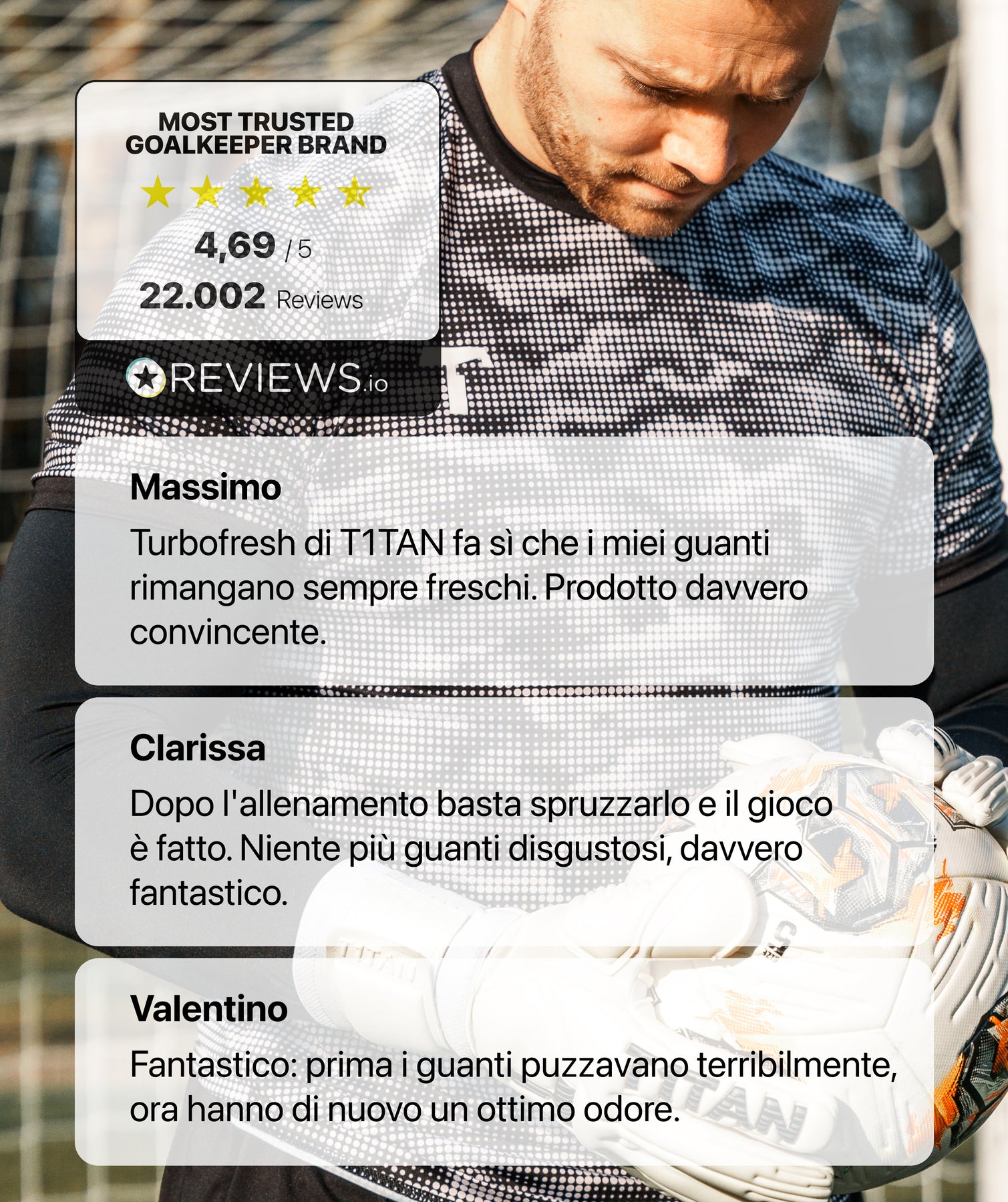 Mani sudate, allenamenti intensi, tante partite – come portiere conosci bene il problema. Prima o poi, anche i tuoi guanti preferiti iniziano a emanare un cattivo odore. Con TURBOFRESH eviti che ciò accada e mantieni i tuoi guanti sempre freschi, puliti e igienici all’interno.